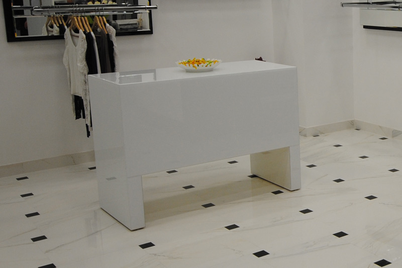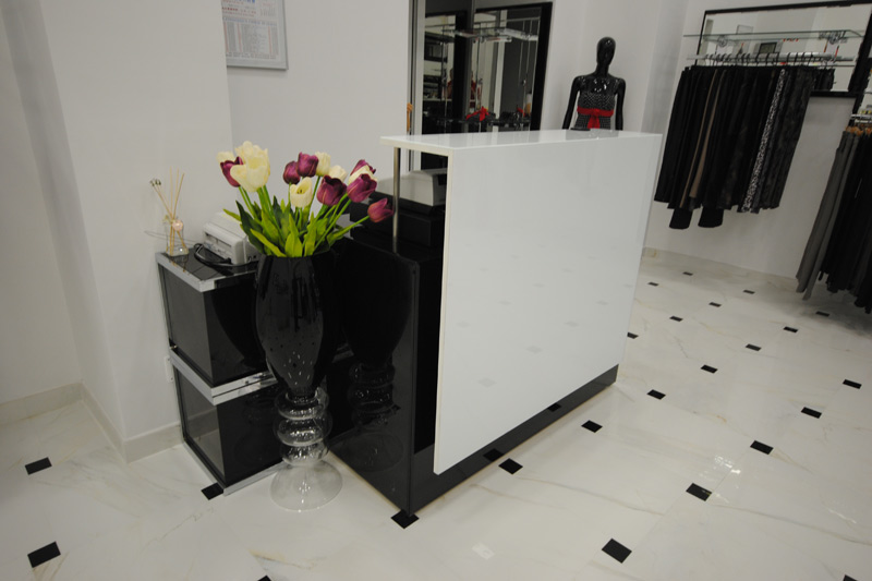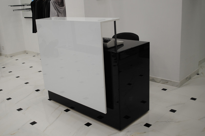 Il mobile specchiato al naturale e bianco e nero. la finitura a specchio bianco e nero, denota oggi stile ed eleganza rendendo il negozio di pregio per la vendita di prodotti che anno bisogno di un supporto d'immagine.