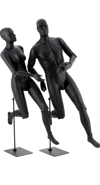 Manichini uomo e donna super snodato in materiale poliuretanico antracite. Completi di base in metallo per la posizione eretta. Corredato da terminale superiore per poterlo utilizzare anche senza testa.